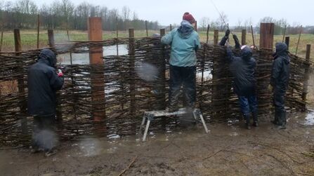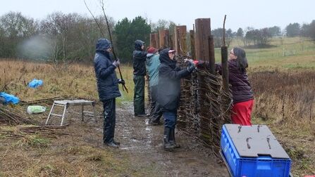 One of the access improvements at the park has been the installation of a new bird screen. The screen itself is situated east of the ponds, allowing access from the public footpaths. Contractors installed four large structural posts, ready for the Links with Nature team and volunteers to install the uprights. The team then had the pleasure of working alongside a North East willow artist Ruth Thompson, from Sylvan Skills, to create the bird screen using willow and hazel.