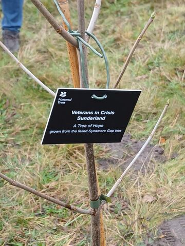 The Trees of Hope initiative was set up in September 2024 by the National Trust. The Trees of Hope are saplings that were grown from Sycamore Gap tree which was illegally felled a year prior. Veterans in Crisis Sunderland were one of 49 recipients, from nearly 500 applications. All Trees of Hope have been planted in publicly accessible spaces, allowing more people to connect with the Sycamore Gap as it enters its next chapter, whilst providing a message of hope to those in the community.
