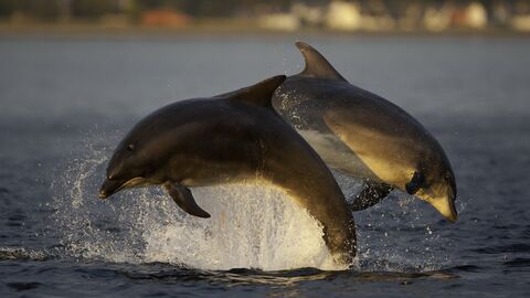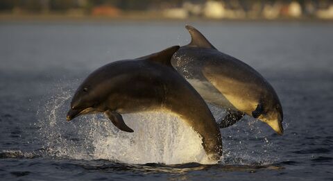 Social group of bottlenose dolphins playing in Moray Firth in beautiful golden evening light. Sequence Pic 1 of 6 - John MacPherson/2020VISION