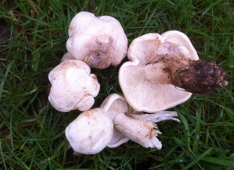 A lovely pale cream colour to begin with, as these stout mushrooms age they begin to turn a buff colour and the cap surface will begin to crack. If you stumble upon a small troop, take a step back as you may find that they're part of a much larger 'fairy ring'. These circles can grow many metres wide, and will usually re-appear in the same spot each year. If you pick one to investigate, take a look underneath and you'll see their gills are very crowded. Finally, take a great big sniff. Their smell is described as 'mealy', resembling the odour of wet flour, and for this particular mushroom, quite often cucumber too!