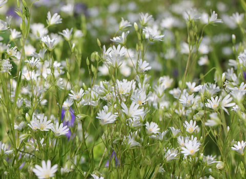 Star-of-Bethlehem' and 'wedding cakes' are just some of the other names for greater stitchwort. Look for its pretty, star-shaped, white flowers in woodlands and along hedgerows and roadside verges.